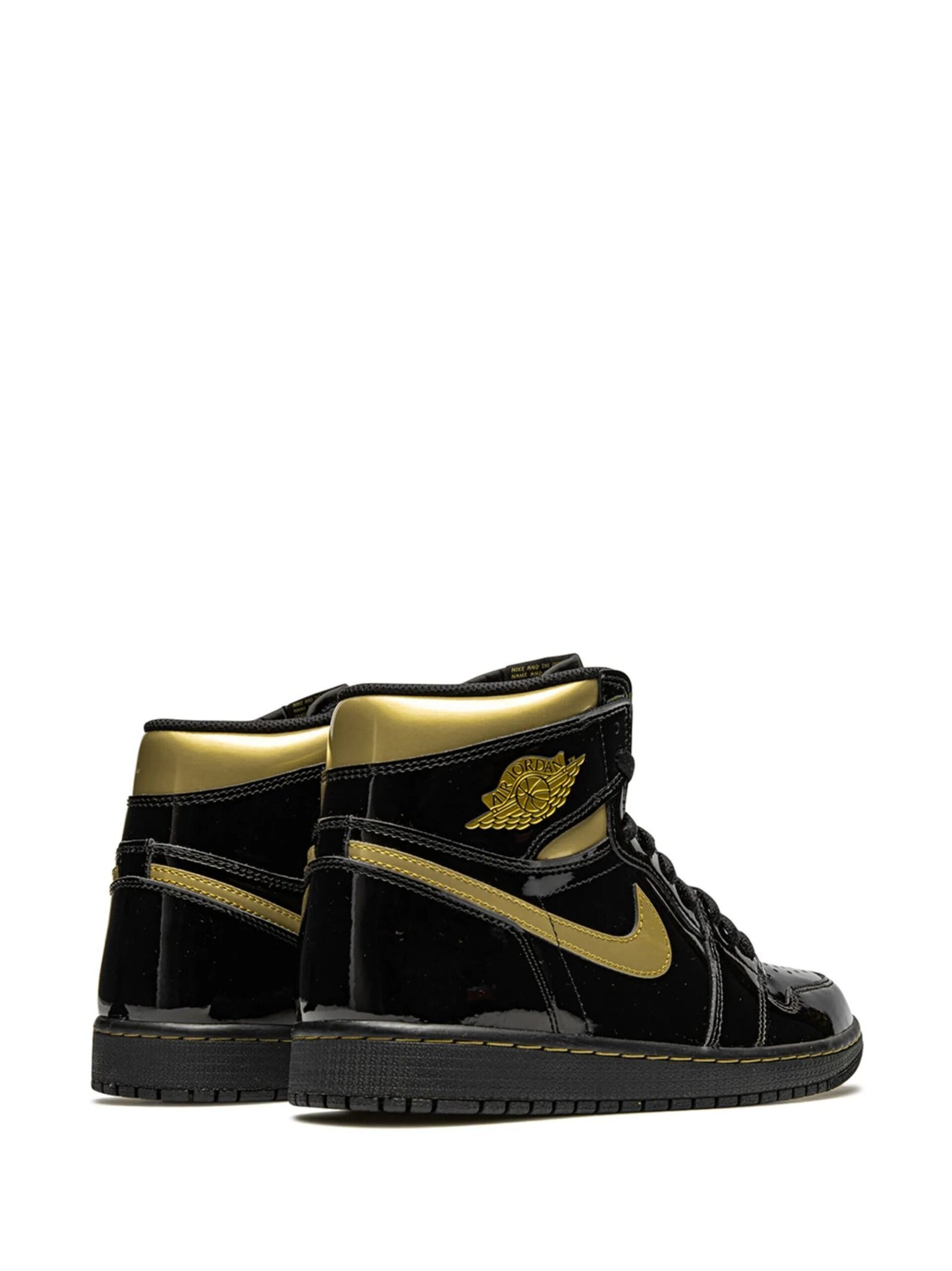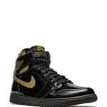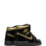 Bring home the gold. These highly sought-after Air Jordan 1 High “Black Metallic Gold” sneakers from Jordan are finished with contrasting panels of patent black leather alongside sparkling gold-tone trims found across the upper and Swoosh logo. Everything about the pair screams you’re a winner.