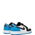 The Air Jordan 1 Retro Low OG is an update of Michael Jordan’s first signature shoe. These low-top sneakers feature a predominantly white colour highlighted with blue accents and black-hued Wings and Swoosh logos – a design that was not on the original Air Jordan 1 Low from 1985.