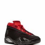 Nike’s Air Jordan 14 Low “Red Lipstick” sneakers are dressed in a bar of black, metallic silver and red colour scheme. The pair features black through the uppers while suede lands on the toe and nubuck on the panels. Next, a red tone adorns the tongue, laces, eyestay, collar, and liner. And finally, the metallic silver appears on the Ferrari Jumpman branding and midfoot shank plate, speckled detailing covers the midsole. A black rubber outsole finishes the look with comfort.