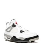 The Air Jordan 4 golf brings the brand’s heritage to the field. This sneaker replicates the look of the OG Air Jordan 4, featuring a white leather upper complete with Nike Air branding on the moulded heel tab. Here, additional grey accents appear throughout to elevate the look, while, underneath, an outsole plate is equipped with removable spikes for superior grip during rotational movements.