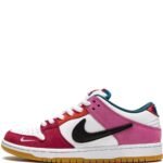 Nike has teamed up with Parra for a new version of the Dunk Low. This sneaker stands out thanks to its bold colour scheme, in a white, pink, blue and red and comfortable design. The Swoosh logo is present on the side of the shoe and at the toe, while Parra’s logo is applied to the heel.