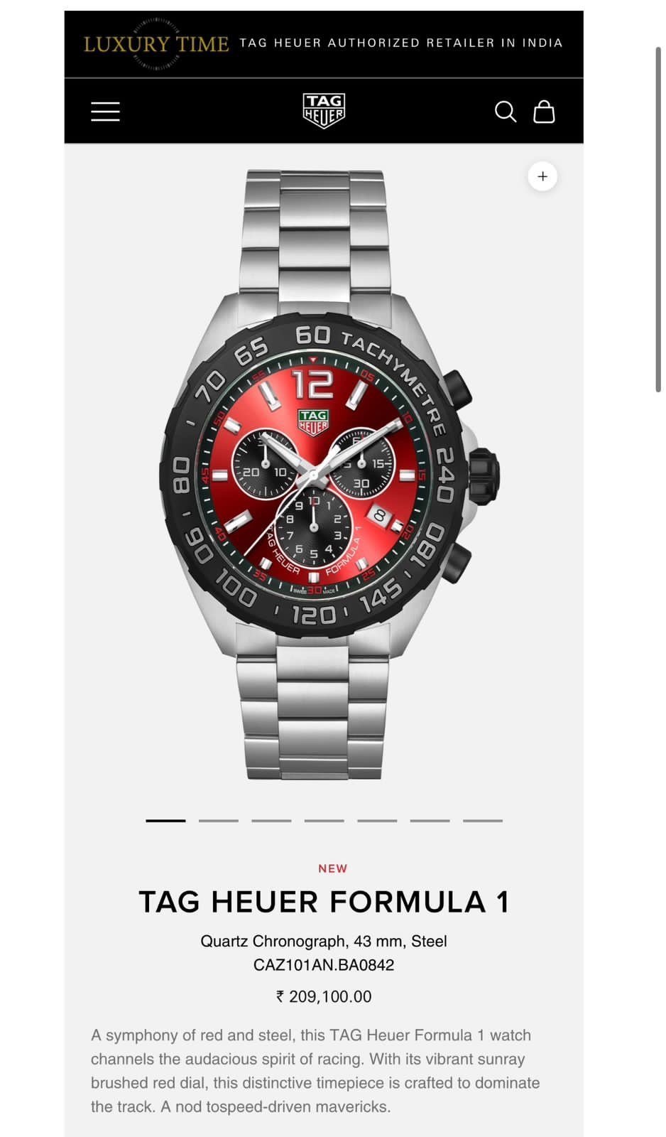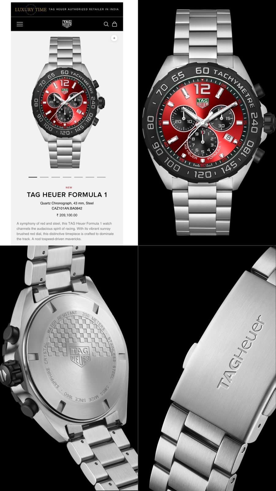 Tag Heuer Formula 1- Silver Strap with Red and Black Dial